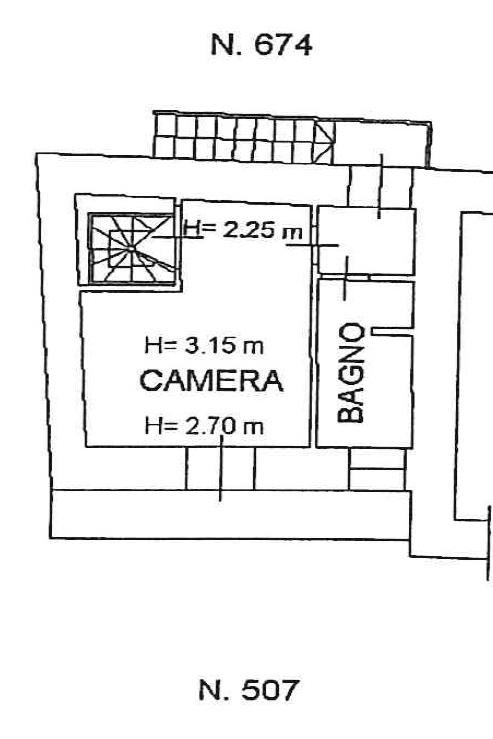 p.t. Ampia zona giorno con terrazzo pavimentato in pietra, scala interna che accede ai 2 piani superiori con 2 camere da letto e doppi servizi. Al piano 2° (3° F.T.) la camera si affaccia su un balcone con bellissima vista panoramica.