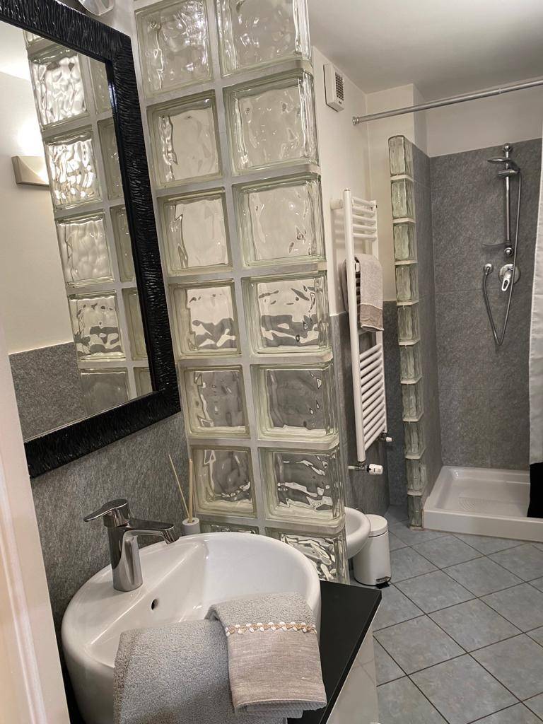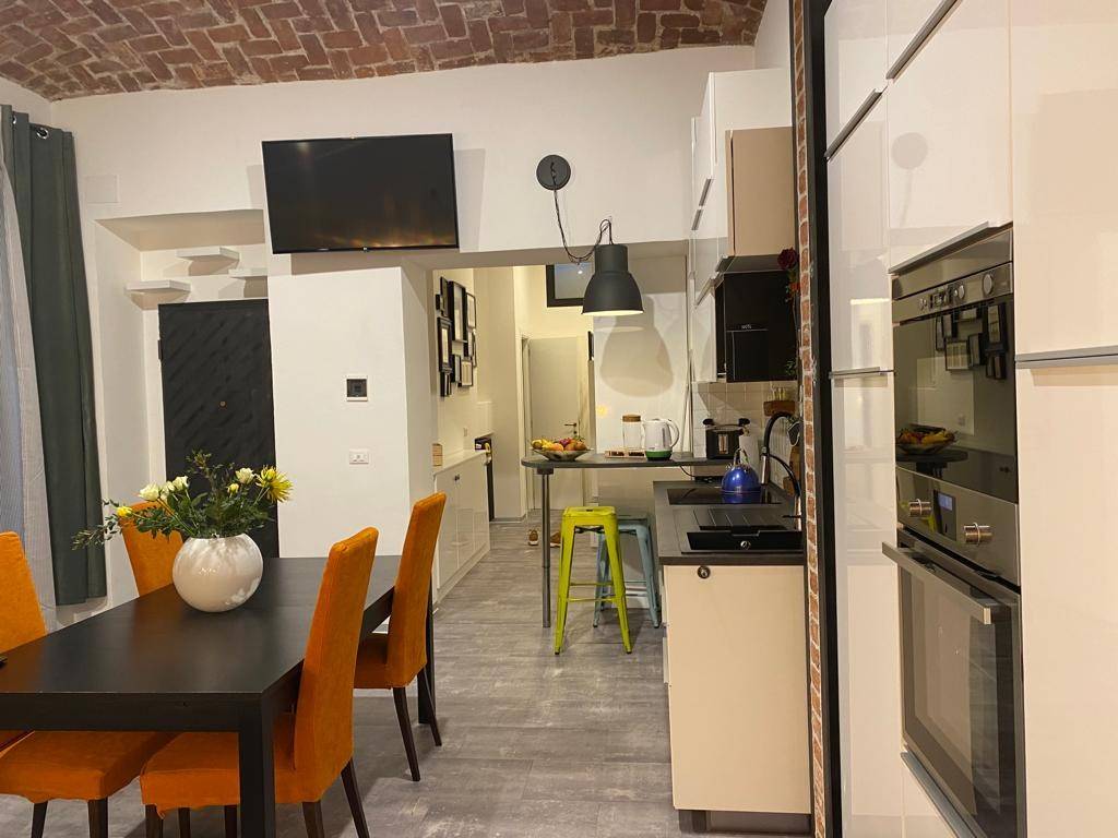 IN PALAZZO SIGNORILE, APPARTAMENTO FINEMENTE RISTRUTTURATO E ARREDATO, COMPOSTO DA INGRESSO SU AMPIO SOGGIORNO CON CUCINA A VISTA CON PENISOLA, COMPLETA DI LAVASTOVIGLIE, FORNO, MICROONDE, LAVATRICE, TV, BAGNO, CAMERA DA LETTO MATRIMONIALE CON BAGNO INTERNO, STUDIO E AREA RELAX.