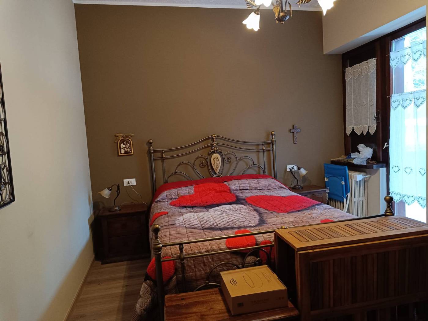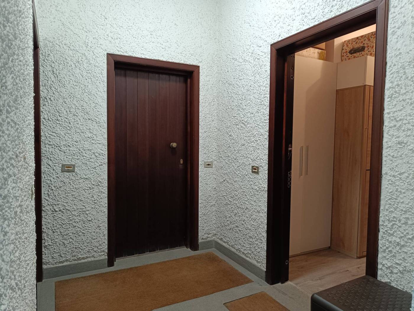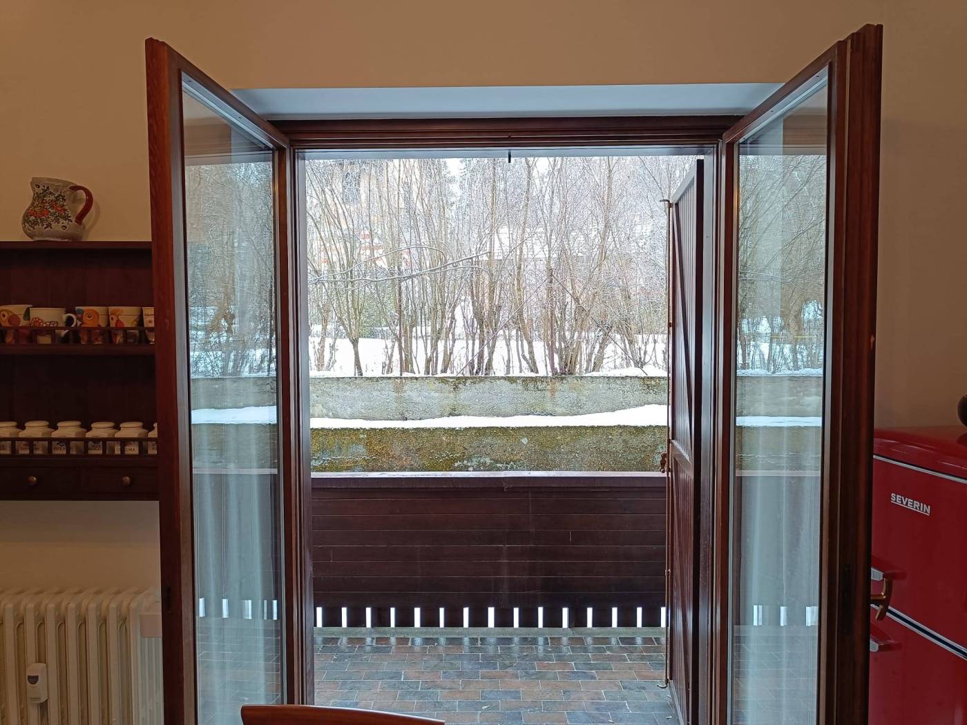 L'abitazione è composta da ampio ingresso (spazioso e ad oggi predisposto di letto a castello), soggiorno con cucina a vista e accesso al terrazzo vivibile, camera matrimoniale con accesso al 2° terrazzo, servizi con finestra, ampio box doccia e posto lavatrice. L'appartamento viene venduto PARZIALMENTE arredato. Riscaldamento semi-autonomo ed infissi in legno con doppio vetro.
